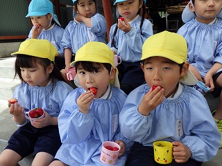 口いっぱいに、いちごを頬張る自分の壁面が完成しました!これからも、色々な経験を重ねていきたいと思います!