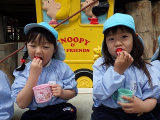 いちご狩りに行くことを知らせると「やったー✨」と大喜びでした。