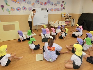 他クラスの友達や他クラスの先生に見てもらうことが初めてだったため、最初は緊張した様子でしたが、段々と体を揺らしながら歌をうたう子どもがいたり、先生の指揮をよく見て真似る子どもが増えてきたりしました💕来年の音楽会が楽しみですね♪