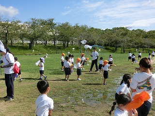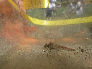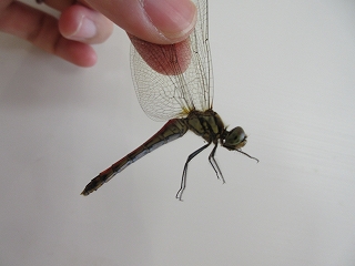 事前にトンボについて調べたり、捕まえ方をイメージトレーニングしたりしながら準備をしてきました!公園に到着し、いざトンボ採取チャレンジ⭐前日が雨だったため、芝生広場の真ん中に大きな水溜まりがありました。しかし、その水溜まり目掛けてトンボがたくさん飛んできていました!子ども達も先生たちも網や帽子を使ってトンボ採取に奮闘しました。しかし、急カーブやスピードアップが得意なトンボ!なかなか捕まえられません・・・。でも、どうしても捕まえてトンボを観察したい!その思いで頑張り見事トンボを4匹捕まえることができました✨