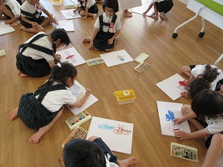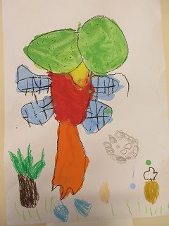 形が完成したら、パスを使って最後の仕上げです!作った作品のテーマに沿った絵を描いたり、丁寧に背景の色を塗り込んだりしました。子どもによって描く物も様々で、作りたいもののイメージを表現することができていました☆完成した作品にタイトルも付けました。一人一人に作品のタイトルを問いかけると、みんなそれぞれ楽しいタイトルを教えてくれました♫作品のタイトルは、是非参観日を楽しみにしていてください。