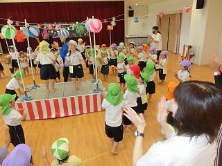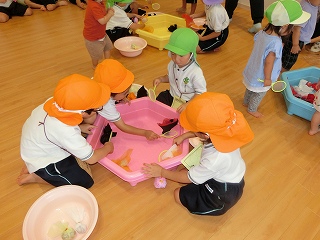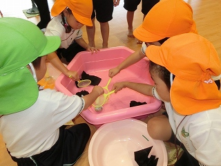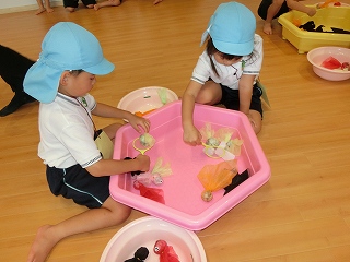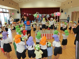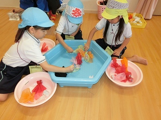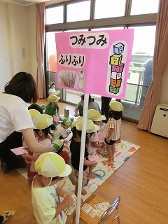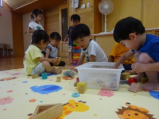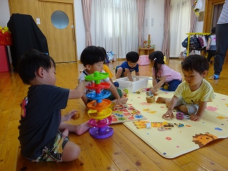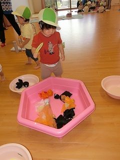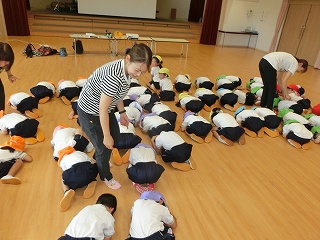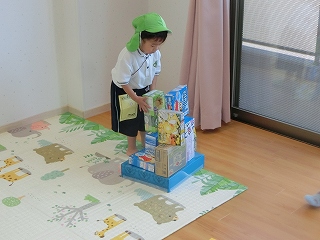 サーキット遊びでは、バランスストーンを両手を広げてバランスを取りながら渡ったり、フープの中を『ケン・ケン・パ!』とジャンプしたりし、体を動かして遊びました😆『落ちたらワニ🐊に食べられる~!!』と、想像を膨らませながら楽しみました💫とても楽しそうに遊んでいたので、またサーキット遊びをしたいと思います🧡