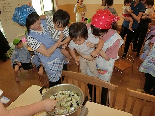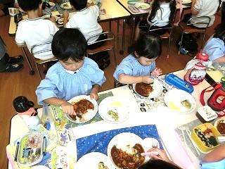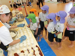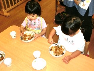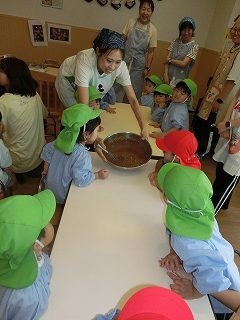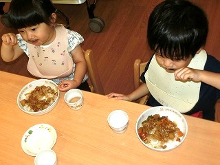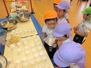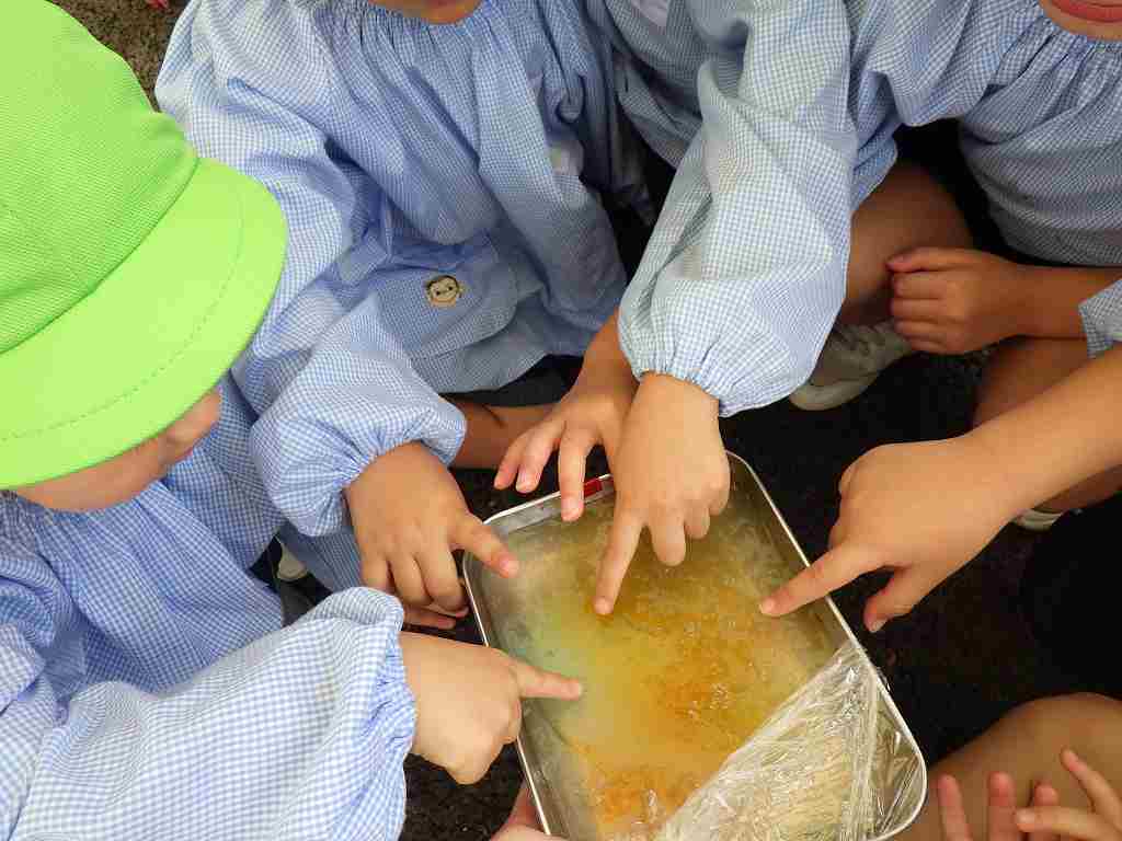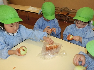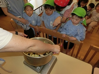 そして、みんなが楽しみにしていた焼き芋大会💫くま組(年長クラス)のお兄さんお姉さんたちが、手を繋いでくれたり、一緒に鉄板の上にさつまいもを投げ入れたりしてくれました🤗!『こっちだよ!』『一緒にしようね!』と、優しく声をかけてくれる、くま組のお兄さんお姉さんと参加することができて、とても楽しそうな子どもたちでした💕他にも、歌を歌ったりホクホクの美味しい焼き芋を食べたりして、季節ならではのイベントを楽しむことができました😋🍠