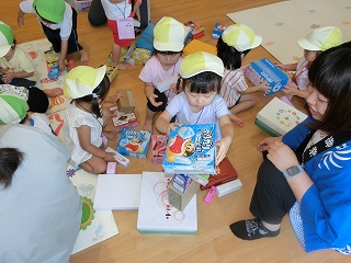 みかん組①(2歳児クラス)との2回目の交流では、プラフォーミング(大型積み木)で遊びました♪みんなで協力をして電車を作って乗ったり、家を作って中に入り、『みんなでテレビ観よ~!』と、ごっこ遊びをしたりしました🥰同じ年齢ですが、普段は違うクラスで過ごしているので、まだ名前を覚えていない友達もいます。ですが、子どもたちは笑顔で大はしゃぎ✨楽しい時間を過ごすことができました♡次の交流も楽しみにする子どもたちでした🩵🤍