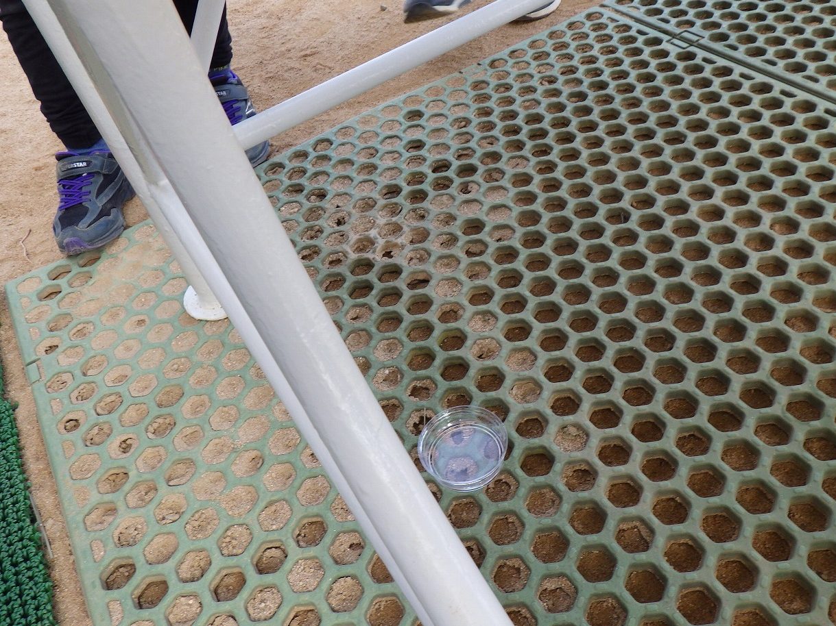 朝礼台の下や建物の壁の近く、遊具の下など色々な所に置きました。