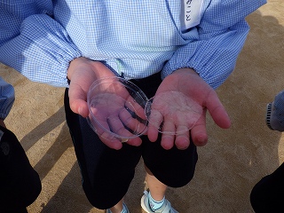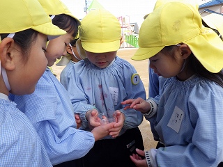 次の日、いくつかのグループの水が凍っていました!!「めっちゃ寒かったんや!!」「水が少ないと凍りやすいんだ!」など気付きがありました😊