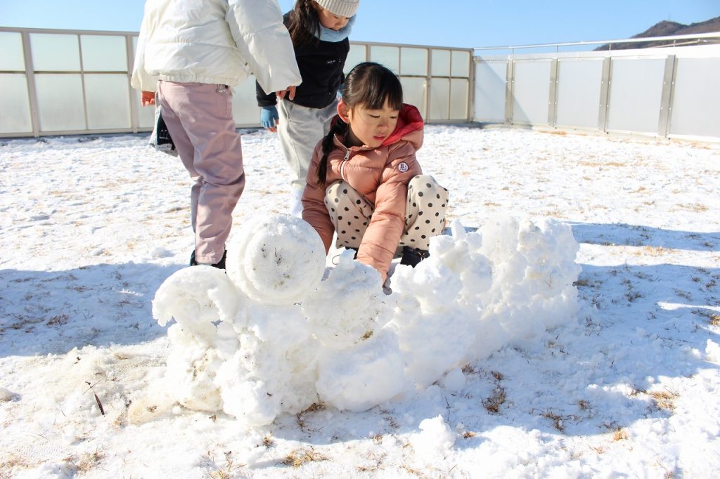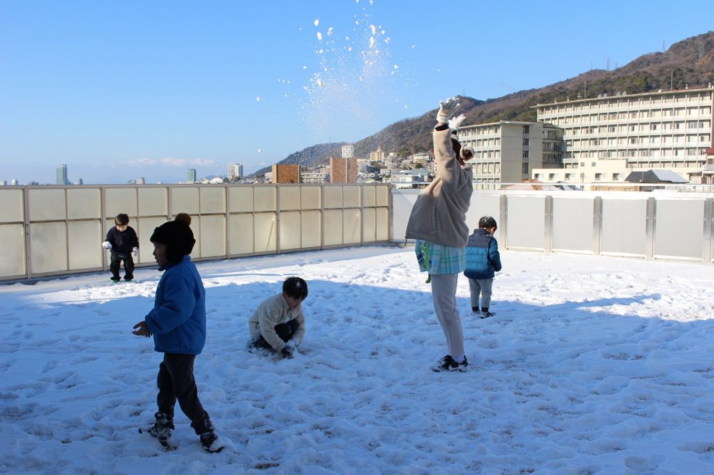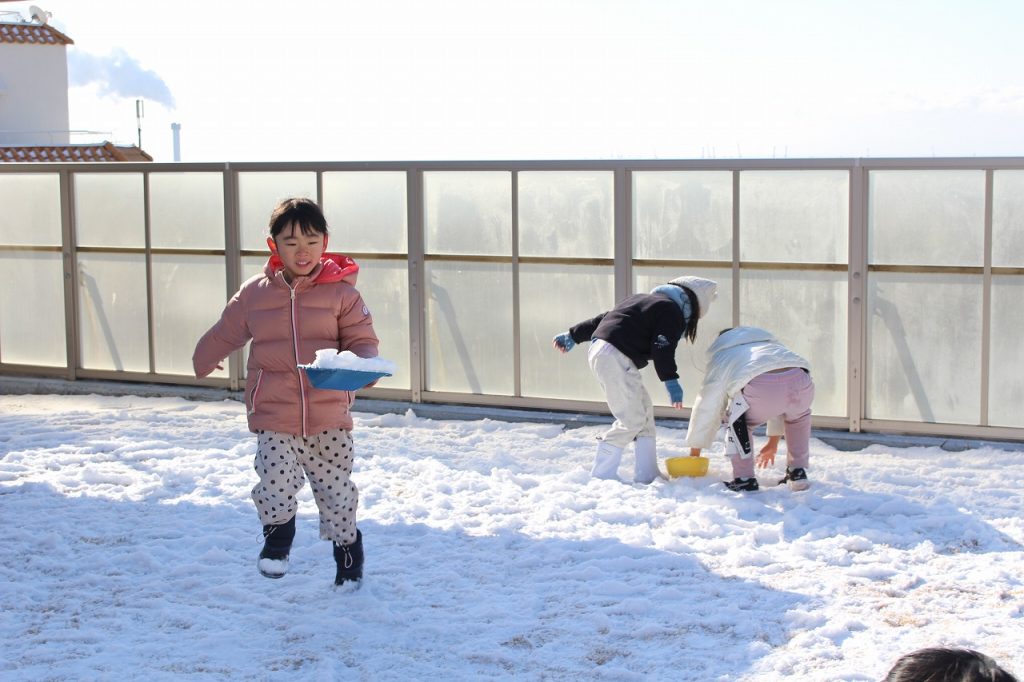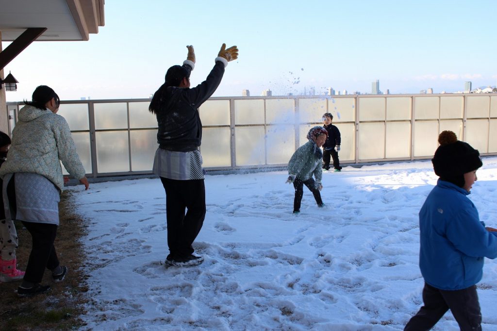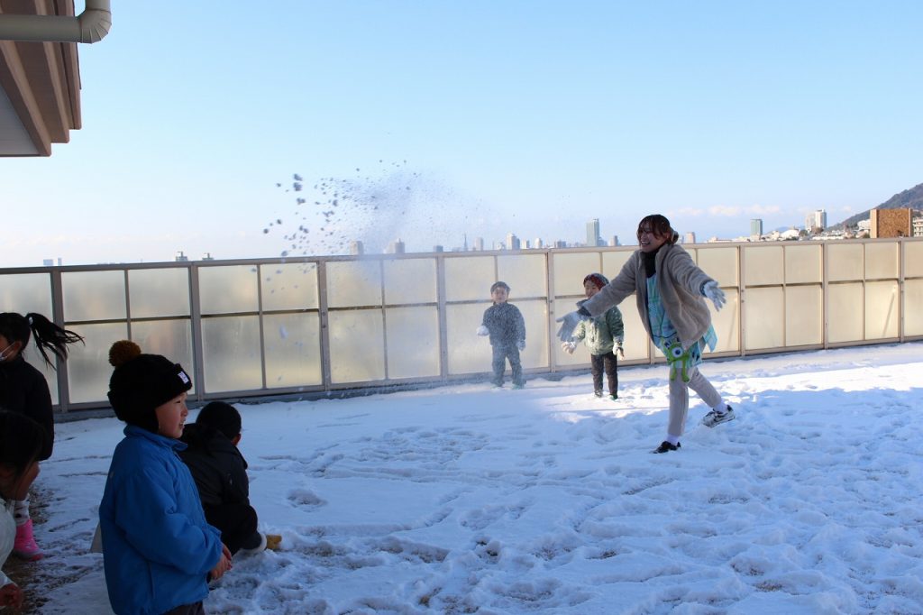 屋上にも雪がい~っぱい☆☆☆みんなで雪合戦をしたり、かまくらづくりを楽しんだよ♪