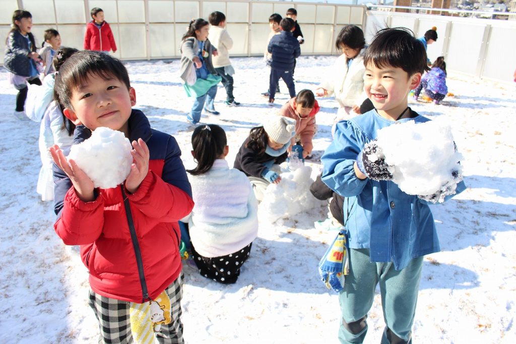 2月9日(月)幼稚園は真っ白の銀世界☆みんなで雪遊びを楽しみました!