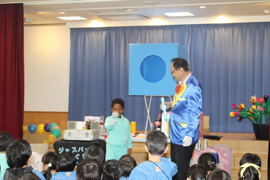 2月17日(火)は親子学級主催『ジャスパーたきぐちさん 出張!マジックショー』をみんなで楽しみました!!