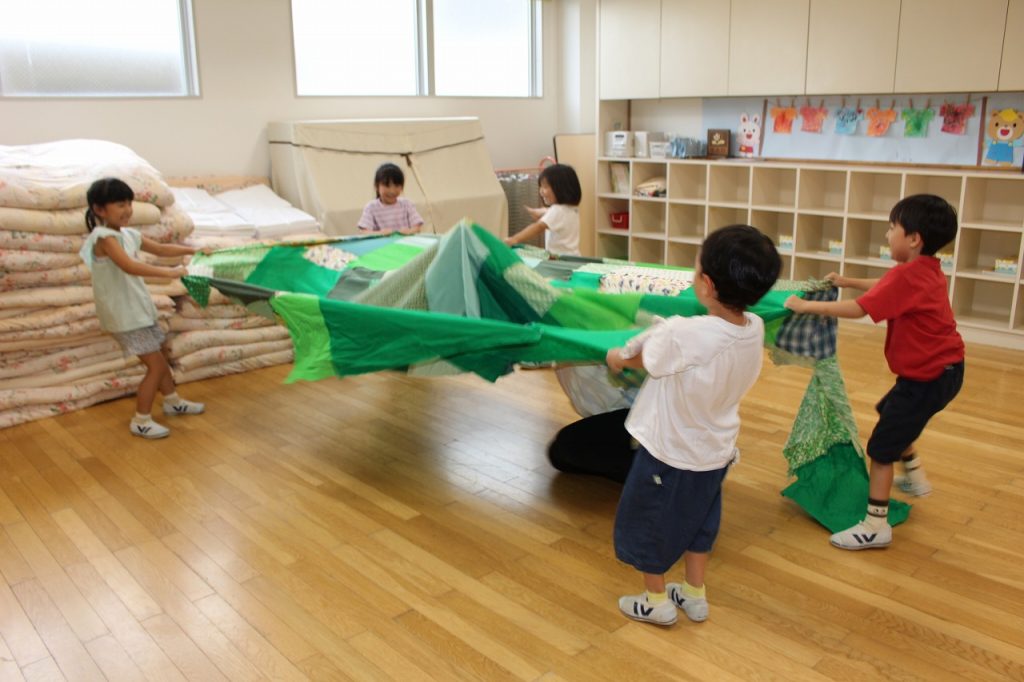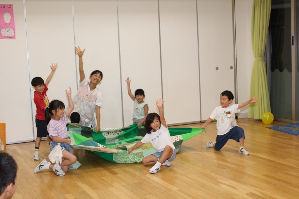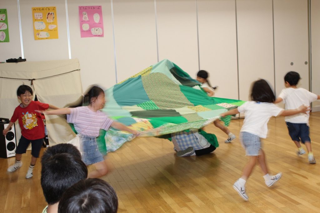 パラバルーンでみんなの気持ちもひとつになって、いろいろな技を楽しみました。