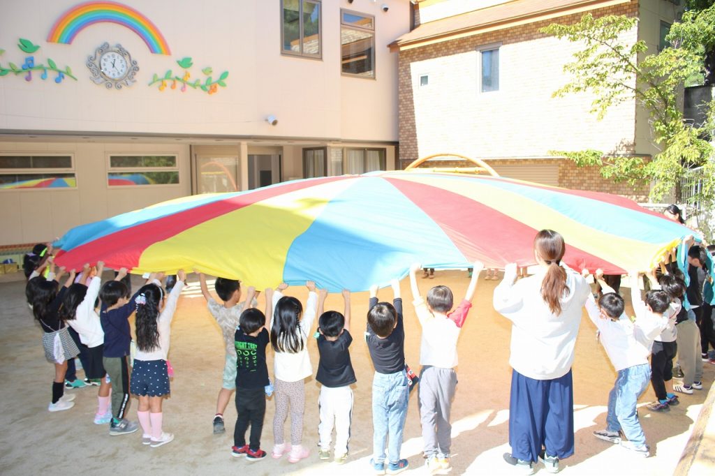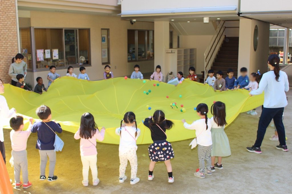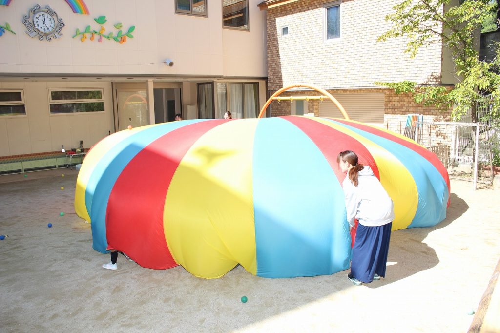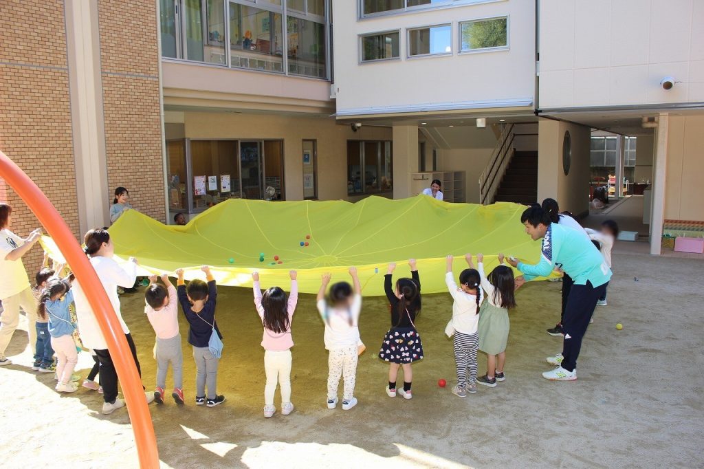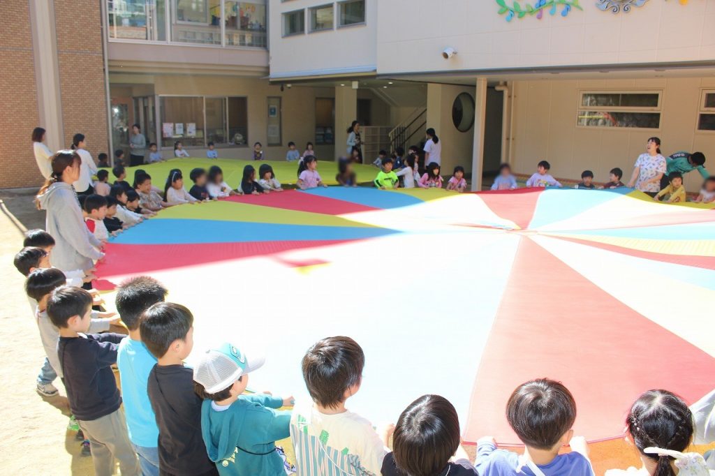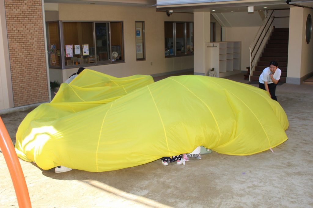パラバルーンでみんなの気持ちもひとつになって、いろいろな技を楽しみました。