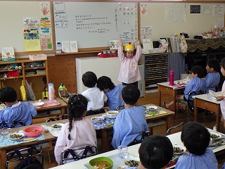 7月、8月生まれの子どもたちは冠をかぶっていますよ。探してくださいね!