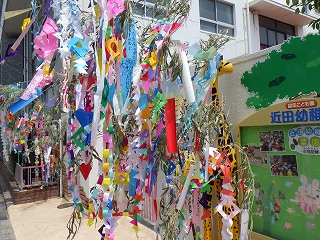 今年も三ツ星ベルトさんに笹をいただいて、子どもたちが飾った笹飾りが玄関に飾られています。ありがとうございます。
