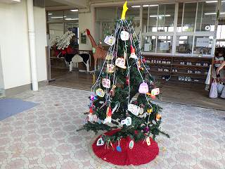 玄関の手作りのクリスマスツリー