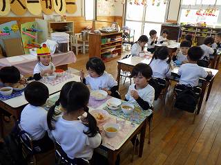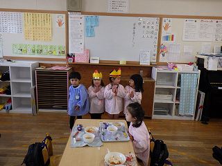 12月生まれのお友達の誕生会を16日にしました。年長7名、年中4名、年少6名、もも3名の20名のお友達、おめでとうございます!