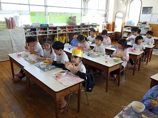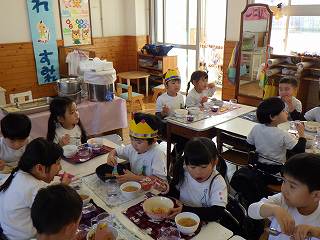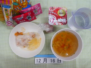 ごちそうは、「happy birthday!ドリア、野菜スープ、お祝い赤飯、お菓子、ゼリー」でした。