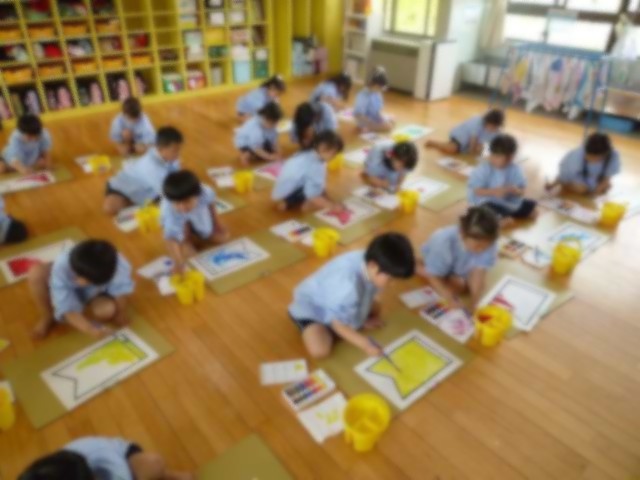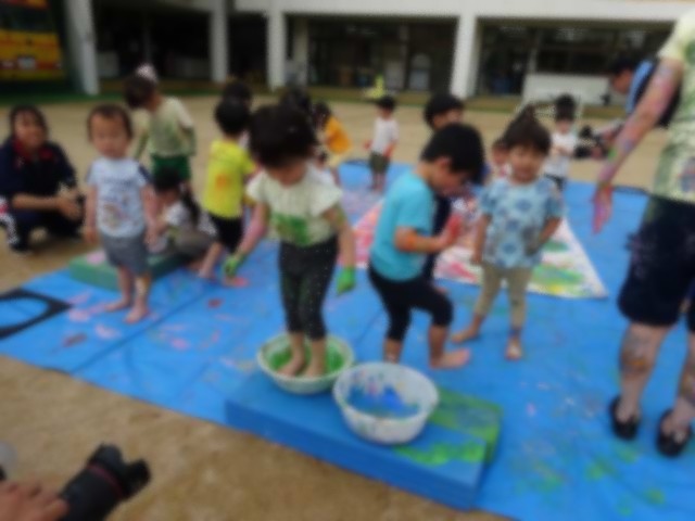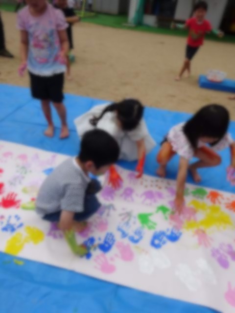 腕や足、顔にも絵の具を付けて楽しみました🌟