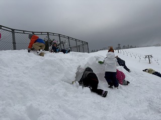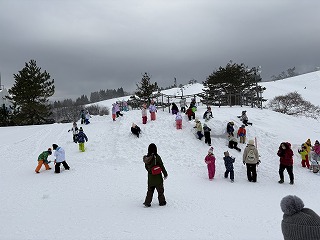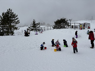 そり滑りや雪合戦、雪だるまづくりなど、寒さを感じないほどたくさん遊びました。昼食は、ゲレンデのレストランで食べました。