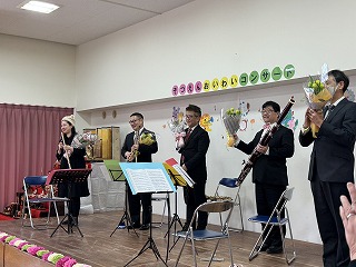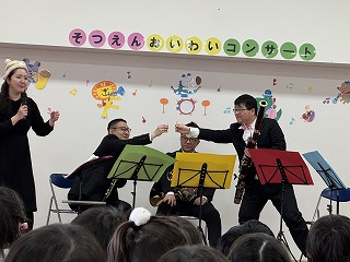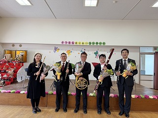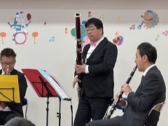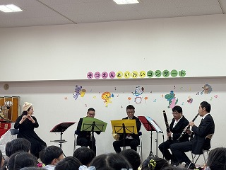 卒園を迎える学校法人森上学園の中央保育園と池田旭丘幼稚園の年長児の門出を祝い、大阪フィルハーモニー交響楽団の方々による木管五重奏のコンサートを開催しました。