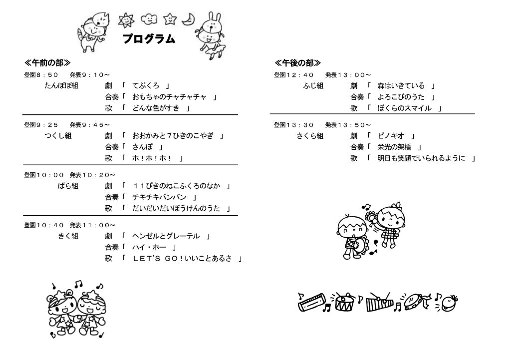 自信を持って舞台に立つ姿、昨年よりグンと成長した姿、友だちと協力してやり遂げる姿・・・それぞれのお子さまの姿に、健やかな成長を感じていただけたのではないでしょうか。