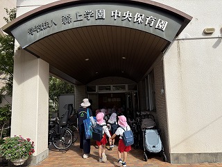 森上学園中央保育園まで行き、保育園の年長組のお友だちと交流しました。