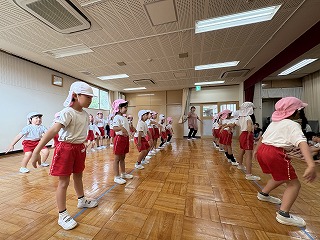 前日の雨で公園がぬかるんでいた為、幼稚園からは年長1クラスのみ参加しました。