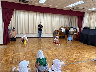 お互い運動会で取り組んだ演技を見てもらったり、一緒にゲームをしたりして楽しみました。