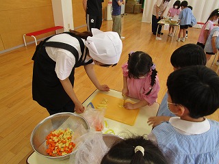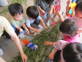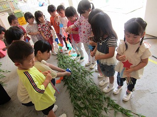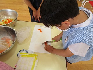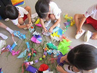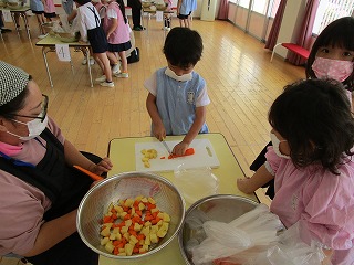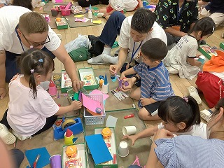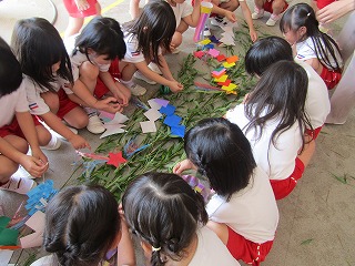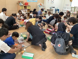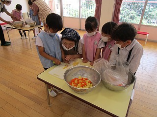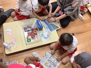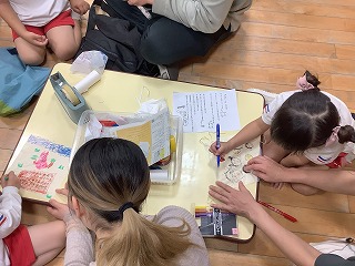 言葉のやり取りを楽しんだり、自分で欲しい物を選んで買ったり、年下の子にやさしくしたり、お兄さんお姉さんからやさしくされたり・・・それぞれに色々な経験をして「おみせやさんごっこ」を楽しみました。