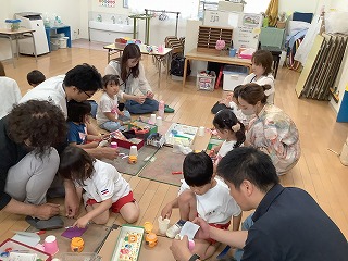 年長組は、2クラスで「おみせやさんごっこ」をしている様子を参観していただきました。