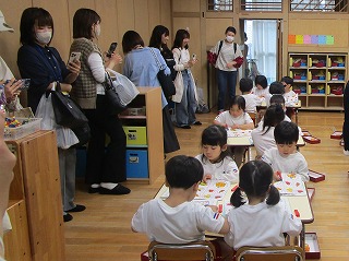 保護者の方に、子どもたちの普段の生活の様子を見ていただきました。