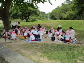 服部緑地公園まで園バスに乗って遠足に行きました