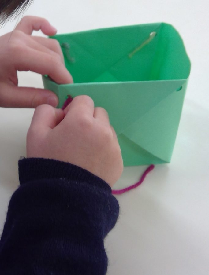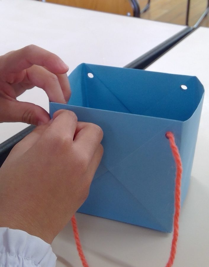 事前にB4用紙を使って、持ち帰りのバッグを折りました!