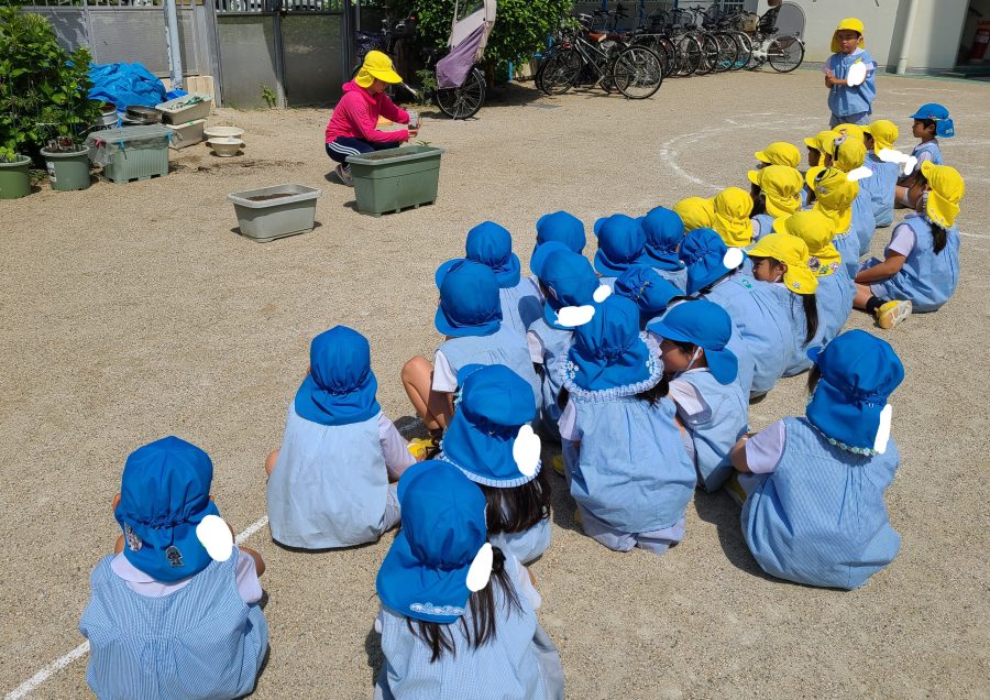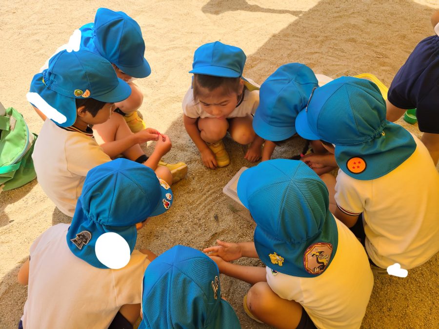 幼虫を捕まえた子は得意気に、とったでー!と見せに来てくれてとっても嬉しそうでした。青組さん、皆で大切に育てていきましょうね!