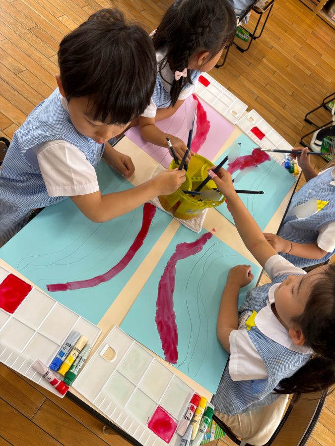 自分の絵の具は綺麗に洗って片付けるところまでがセットです😊