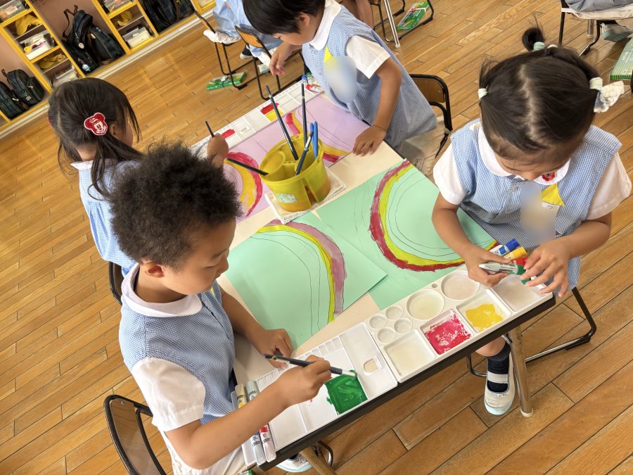 綺麗に塗れた虹を嬉しそうに見せてくれました🌈