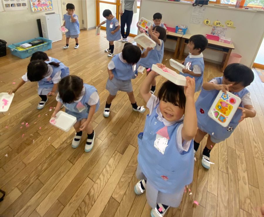 最後は 「3!2!1!」の掛け声で ヒラヒラと落として遊びました😊