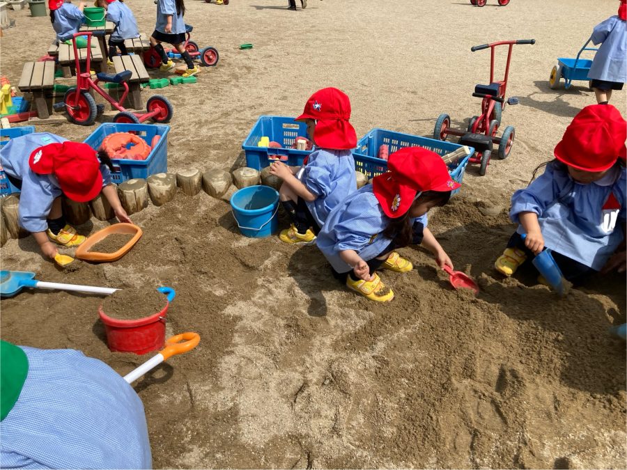 普段は、お外に出ると砂場付近で砂遊びが大人気です✨