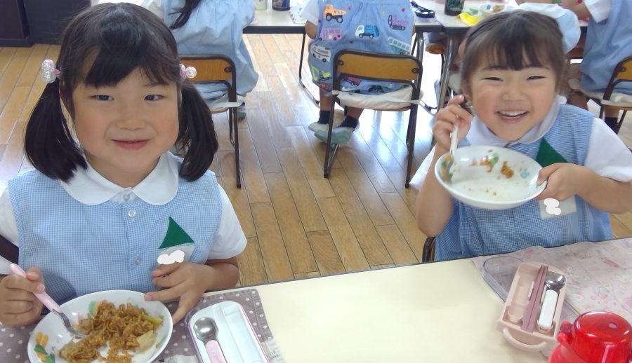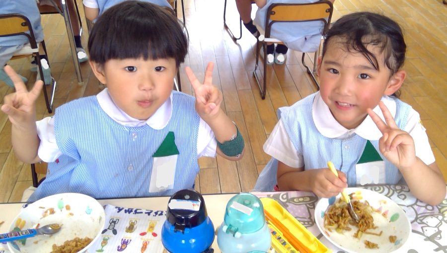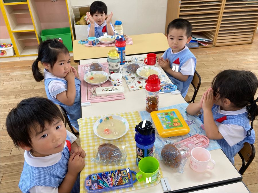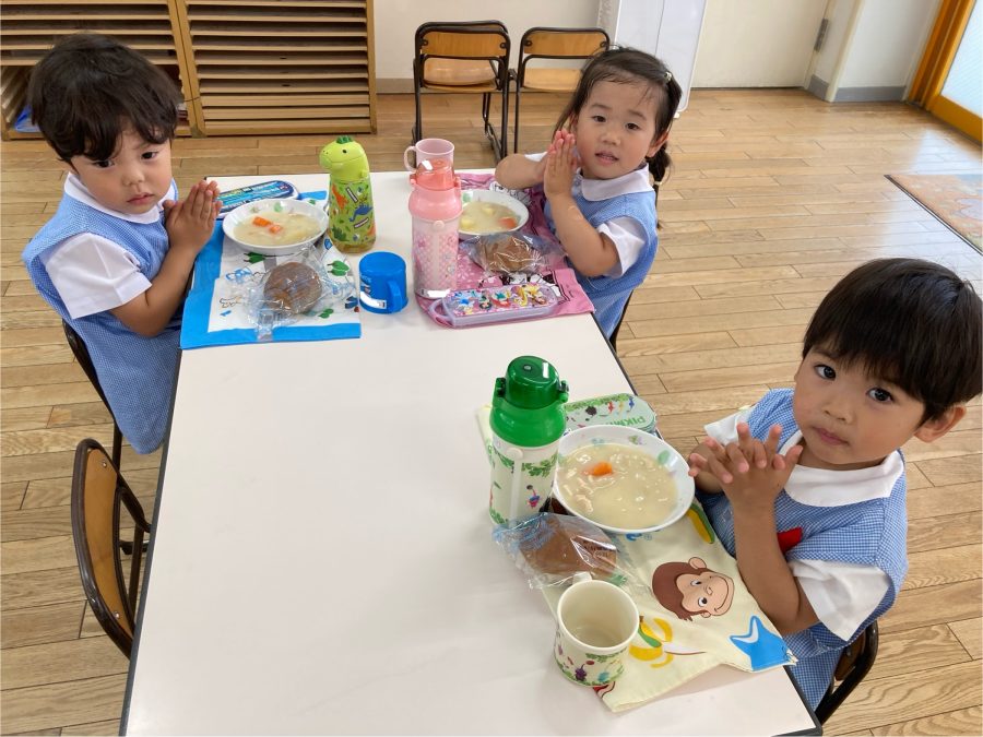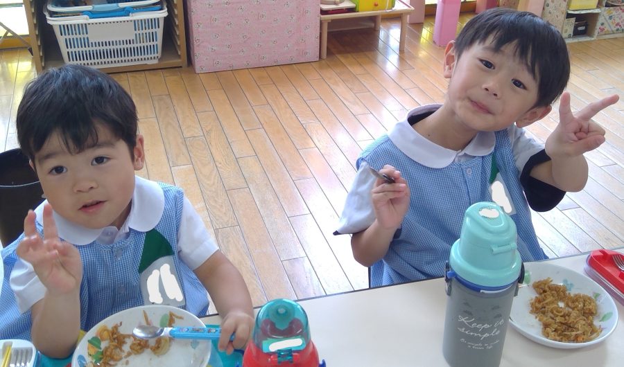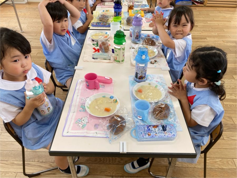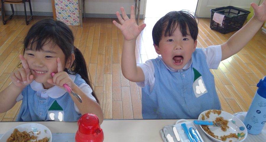 「おなかすいた~~」の声が聞こえ始めたので、いつもより早めの給食にしました☺