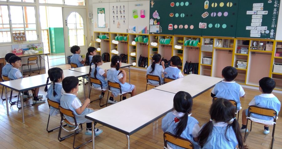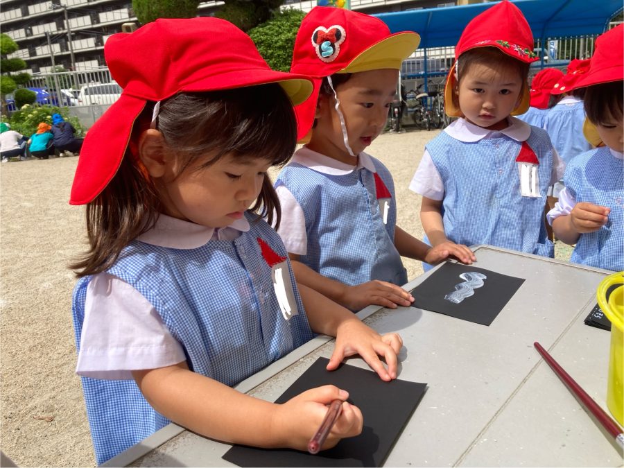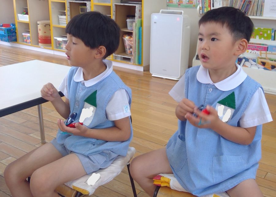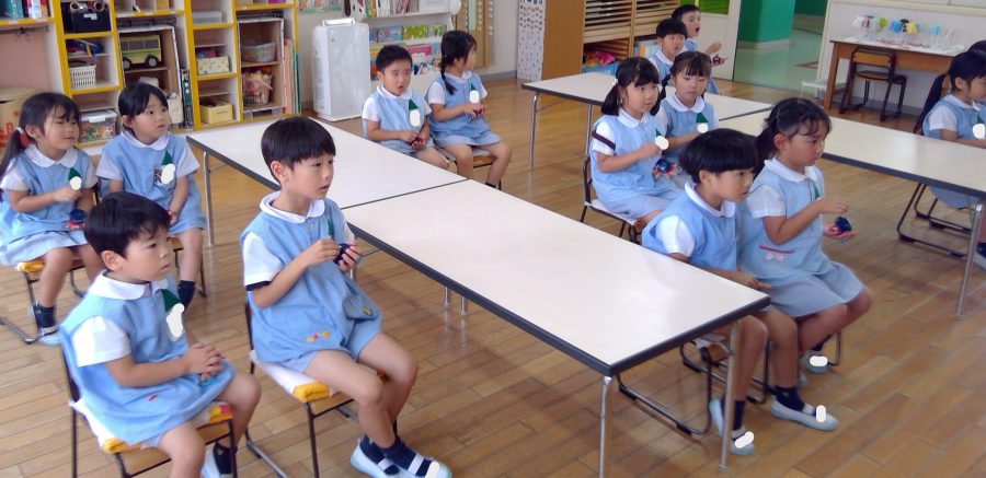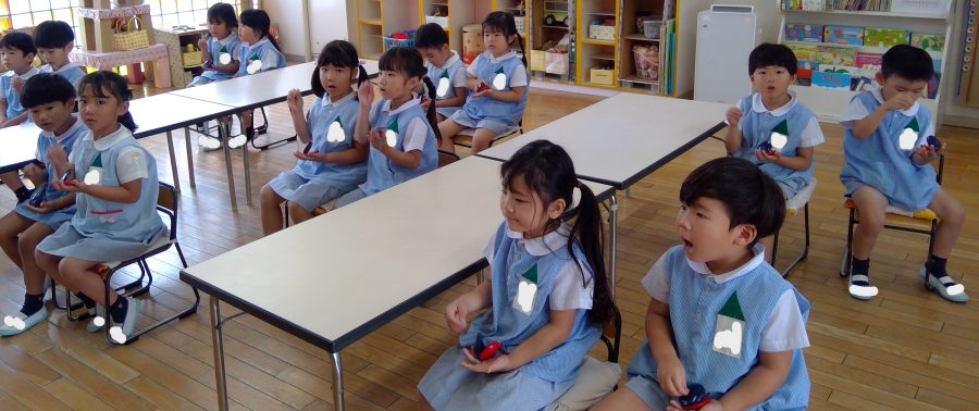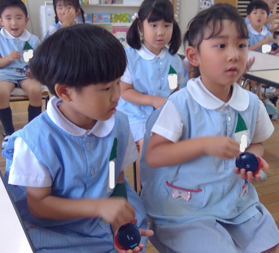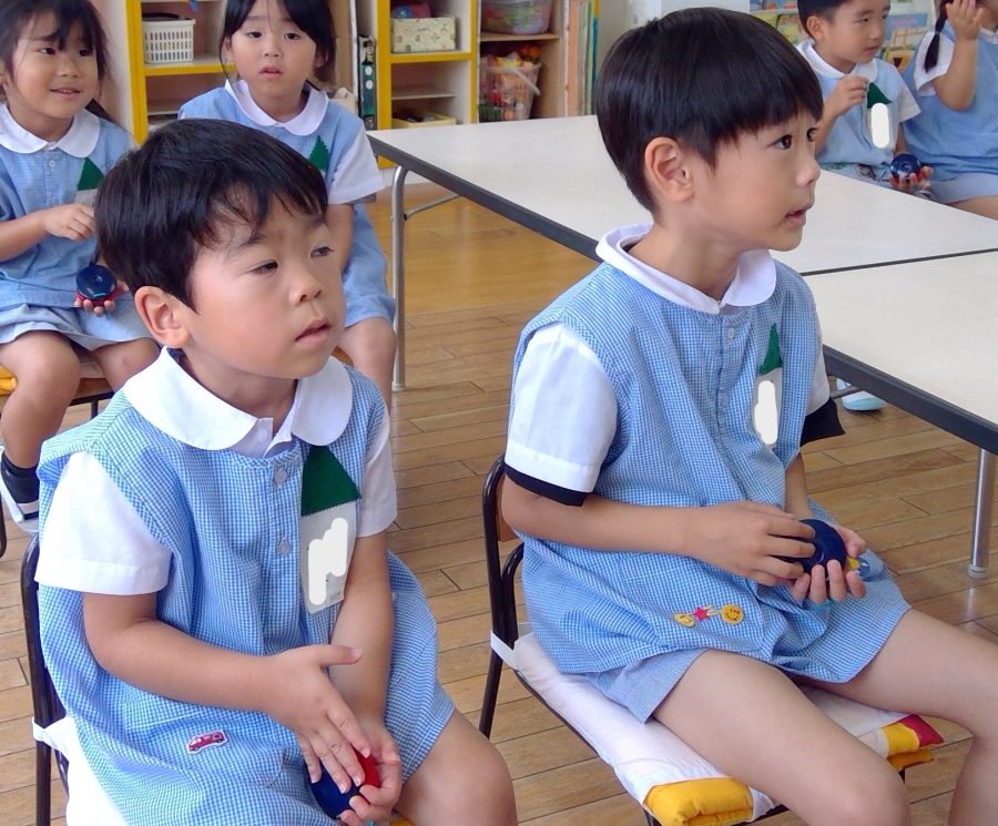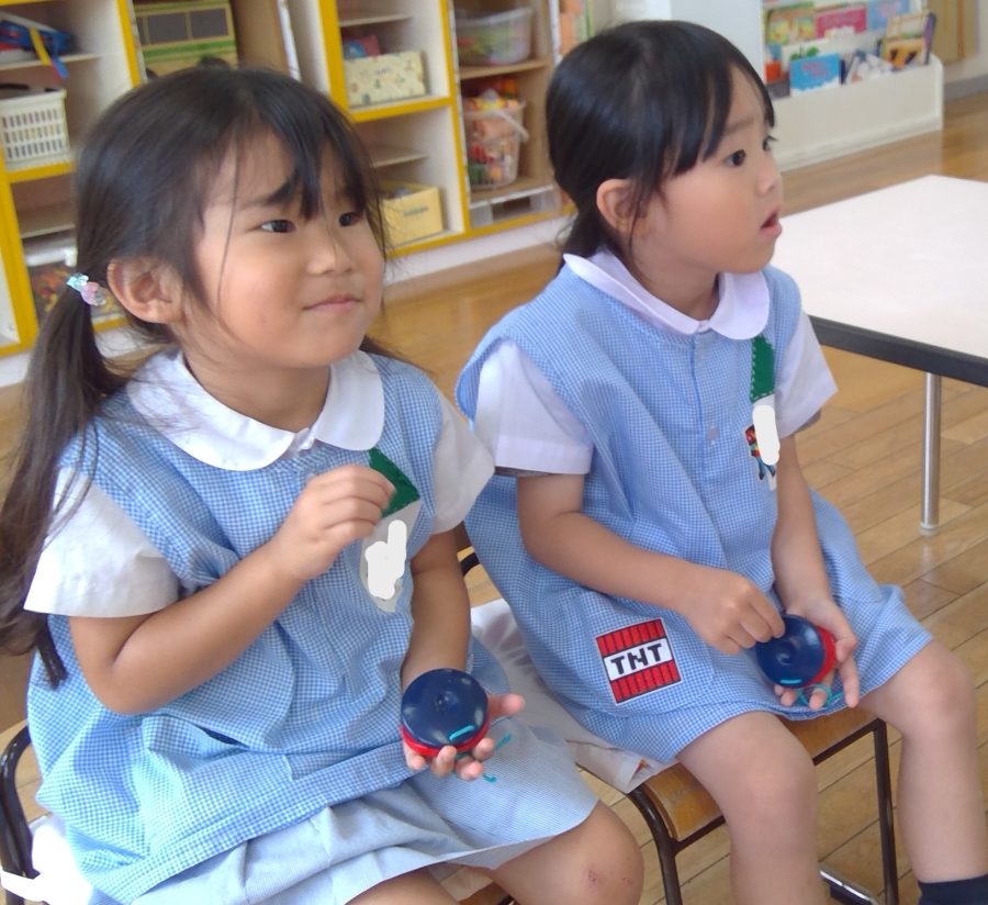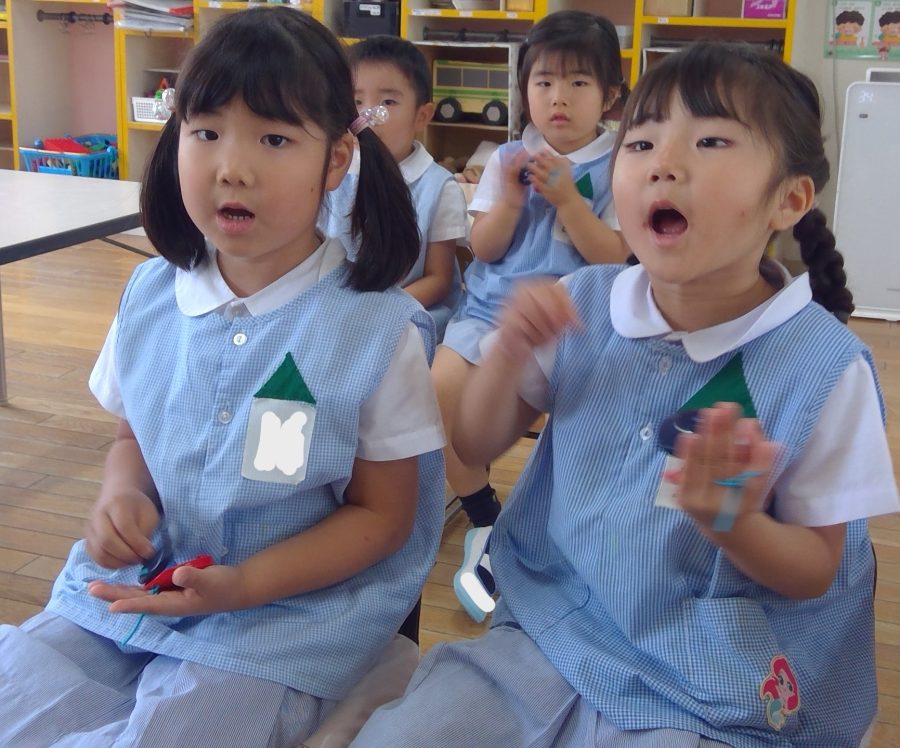先生のお話を聞いて、ワクワクが止まらない年少さん達です。