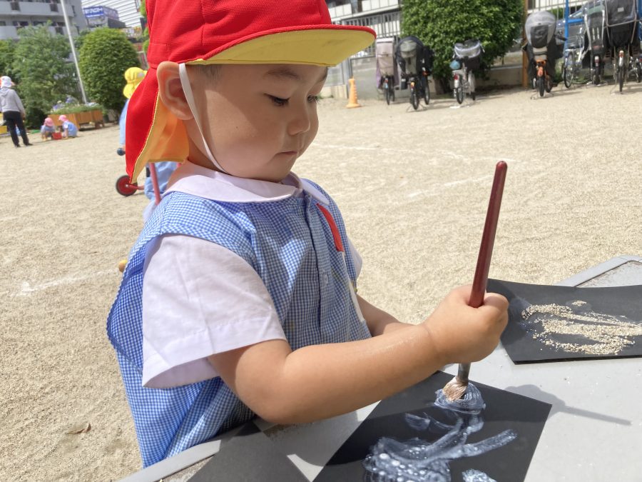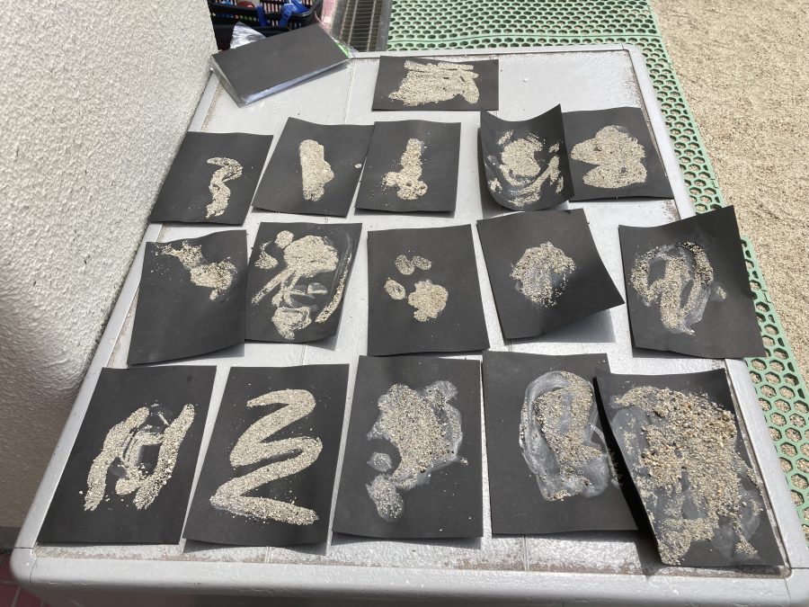そこで、水に溶かしたボンドと筆で、砂絵遊びをやってみました😄