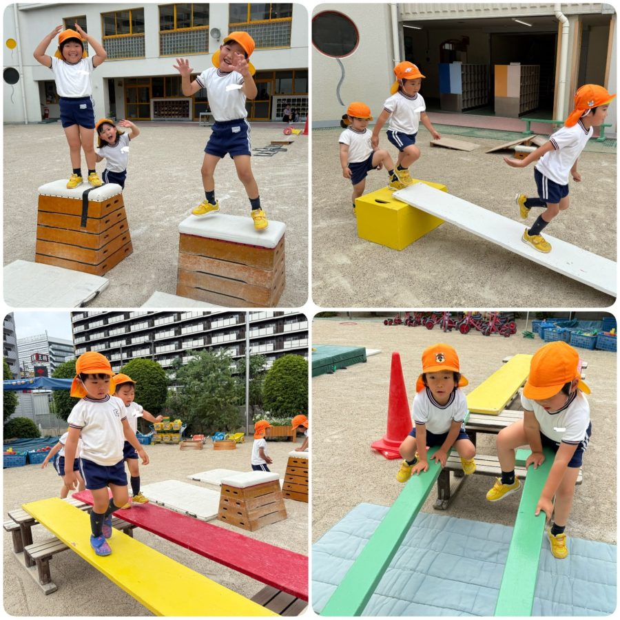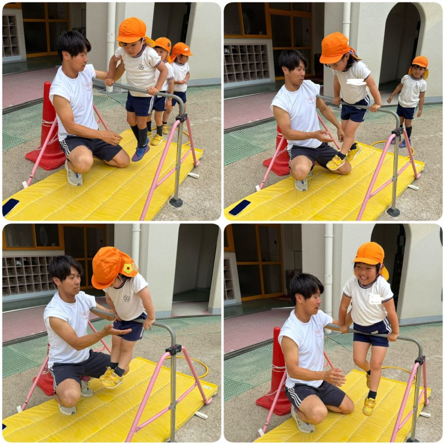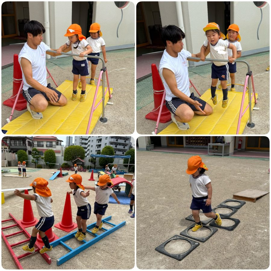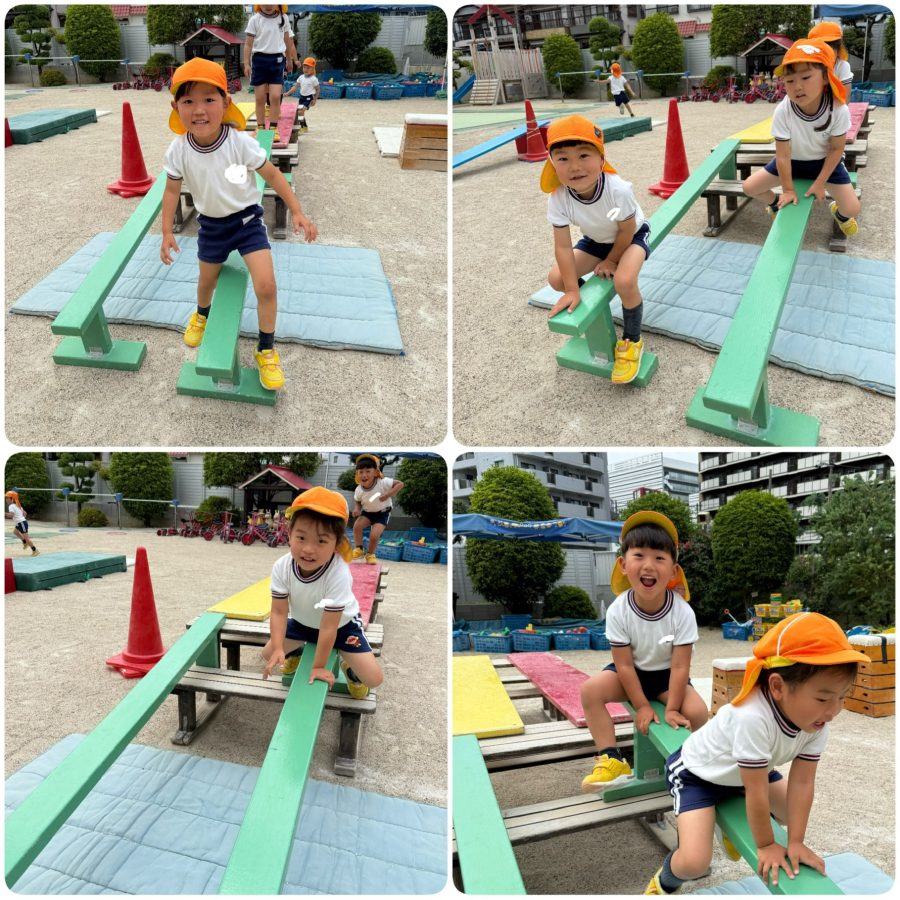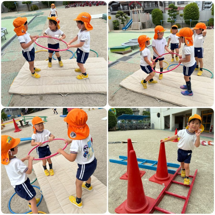 リズムよくケンケンパー、はしごを落ちないように慎重に渡ったりもします♪
