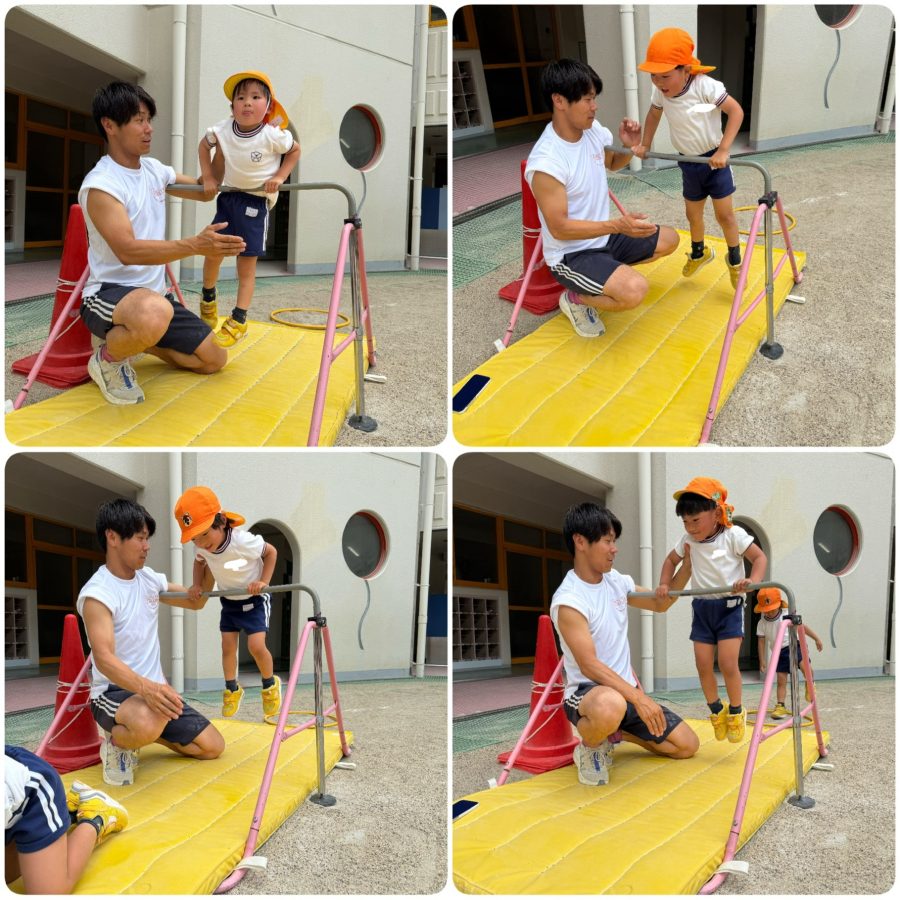 自分で鉄棒に飛び乗り、自分のペースで前周りができていましたよ!