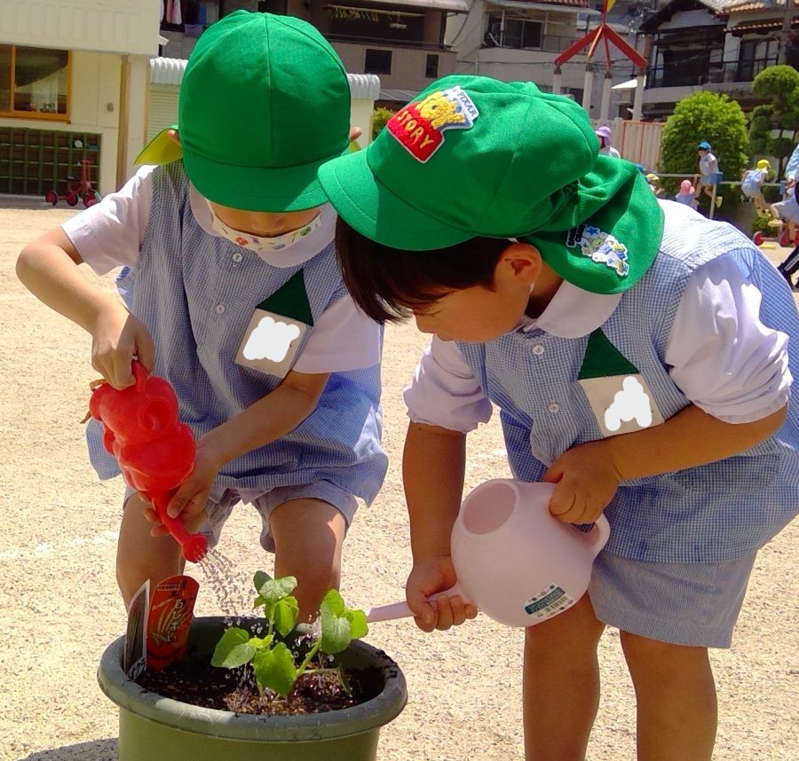 みんなで「大きくなあれ大きくなあれ~!」と声を掛けながら 1人1人真剣にじょうろでお水をあげる姿がとっても可愛らしかったです☺️