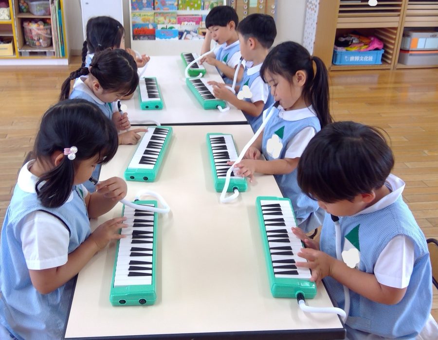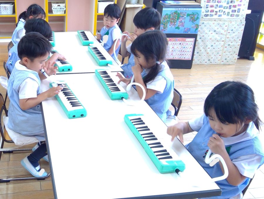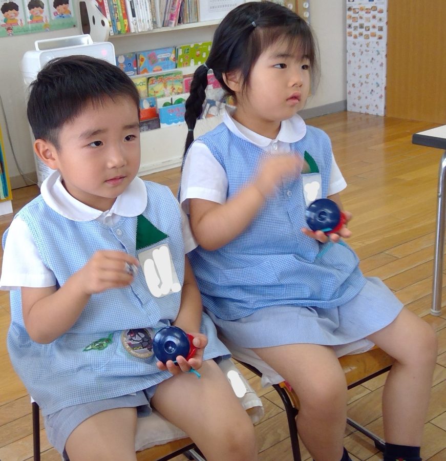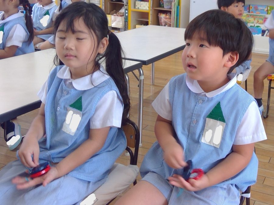 「おもちゃのチャチャチャ」の曲に合わせて、色々なリズムを鳴らす練習をしました♪