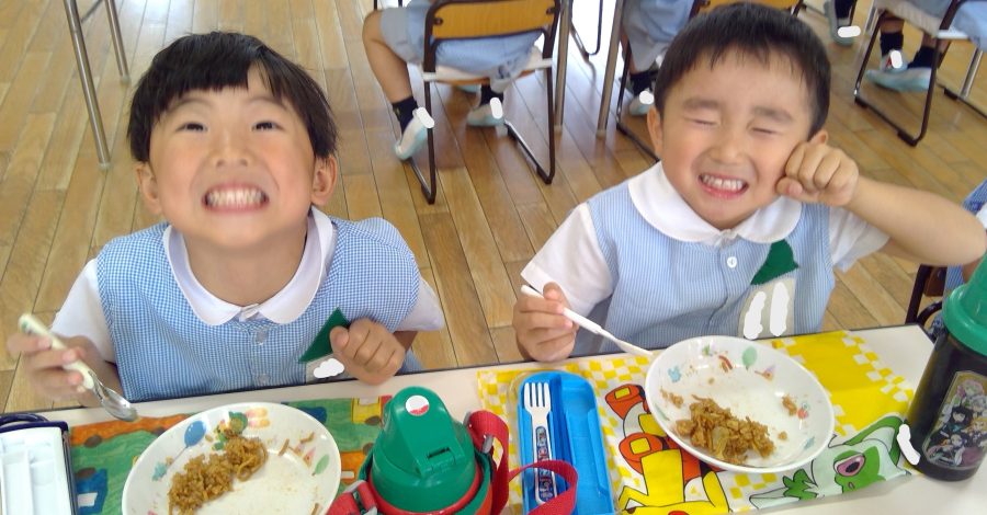 給食の歌をうたって、席に着いたらみんなで「いただきまーす!」