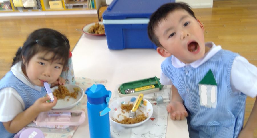初めての『そばめし』の給食にテンションが上がりっぱなしの子どもたち(笑)