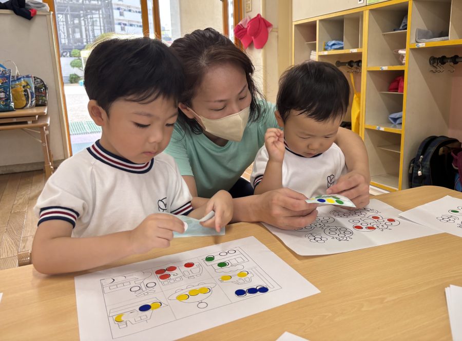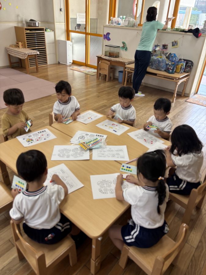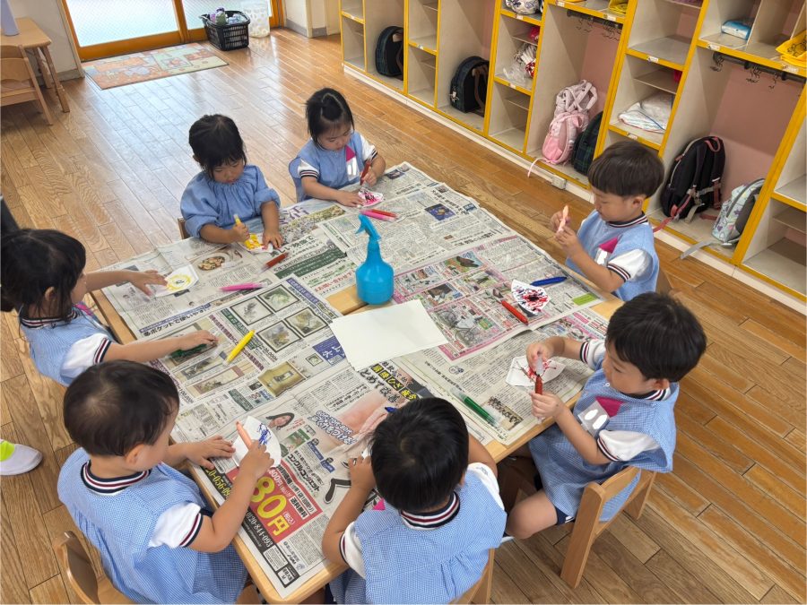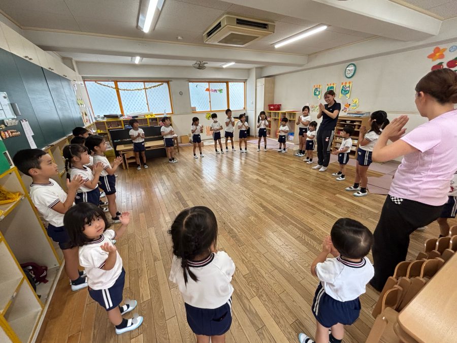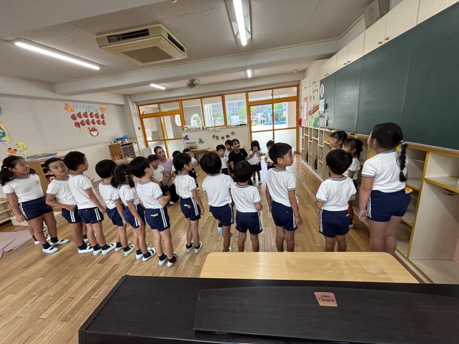「先生、〇〇行ったでー」「僕は〇〇買った!」など、夏休みの思い出を話してくれる子どももいました!