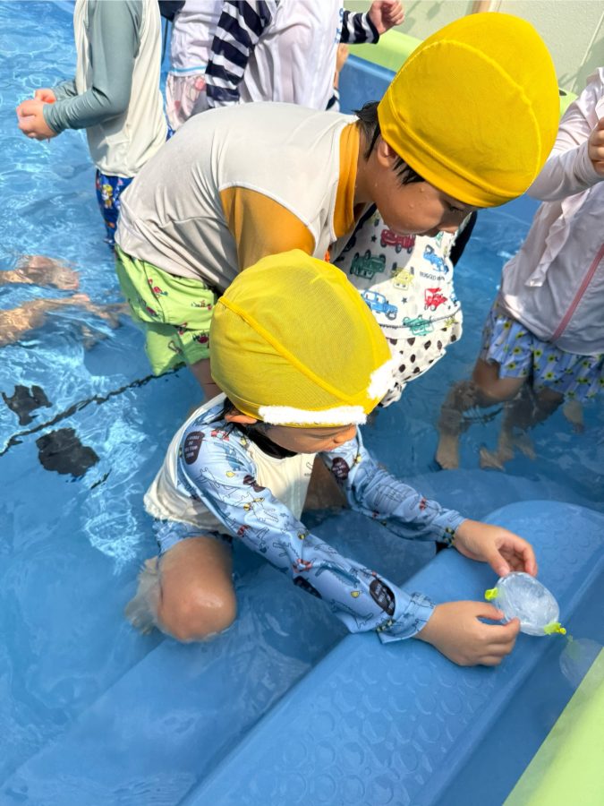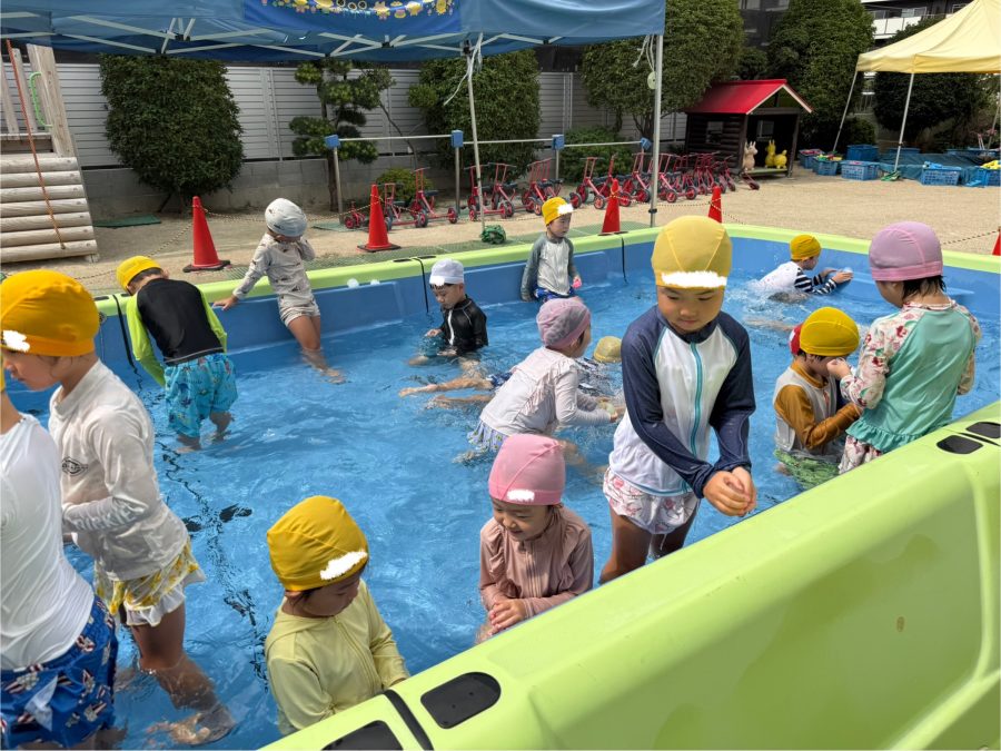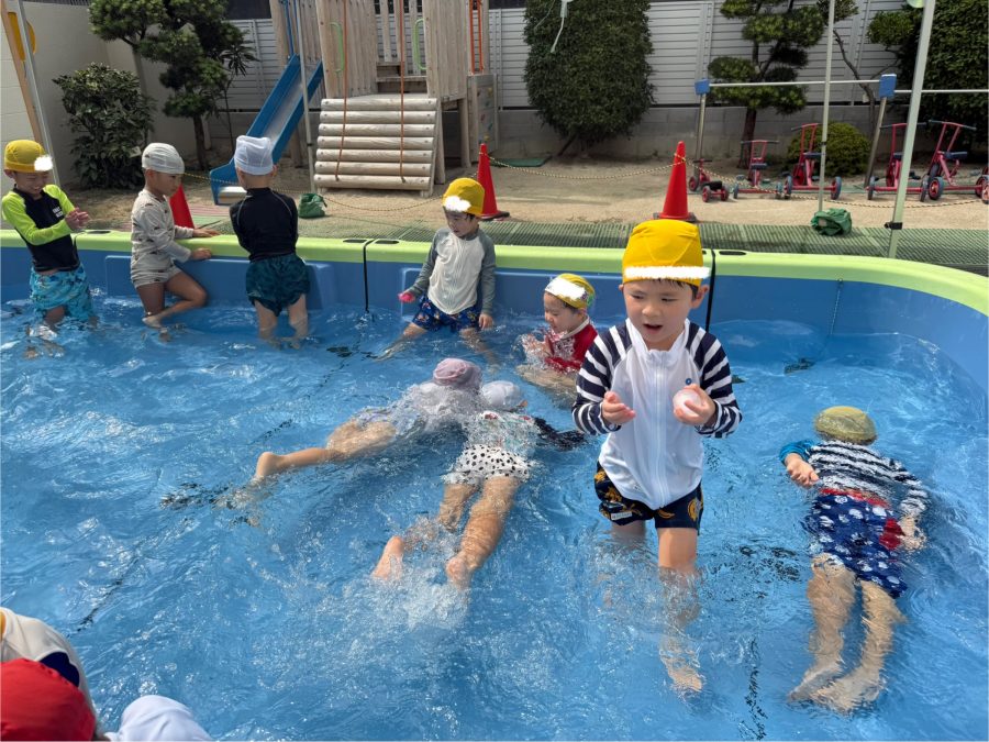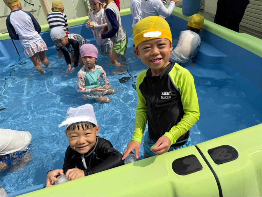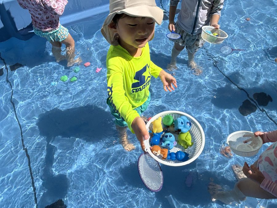 男女対抗で水のかけ合いっこをしたり、ワニのポーズで泳いだり、賑やかなプール時間になり良かったです😊