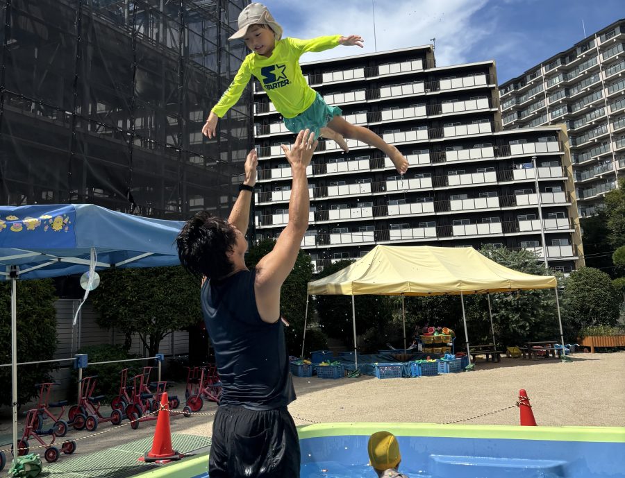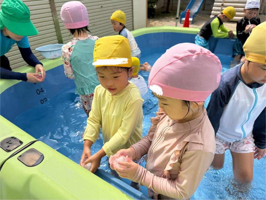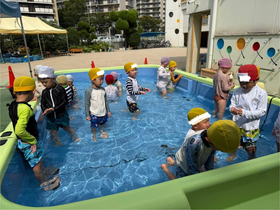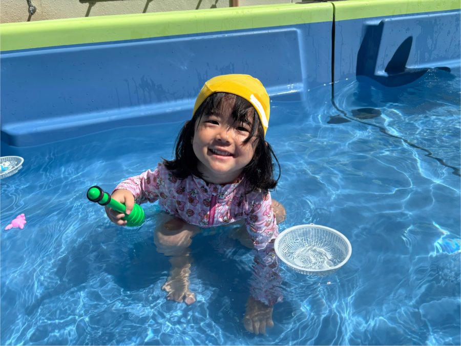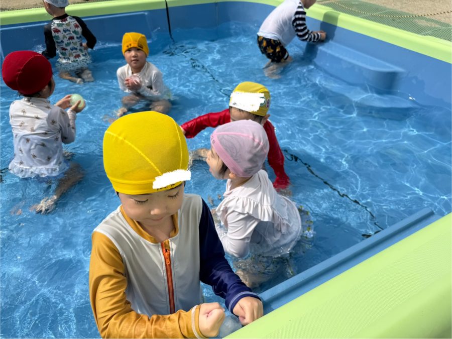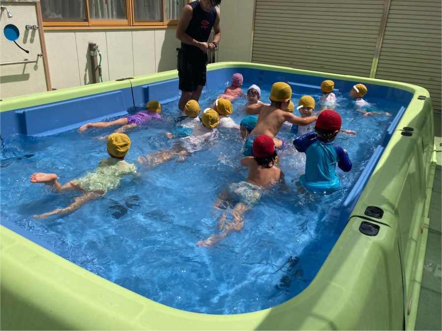 男女対抗で水のかけ合いっこをしたり、ワニのポーズで泳いだり、賑やかなプール時間になり良かったです😊