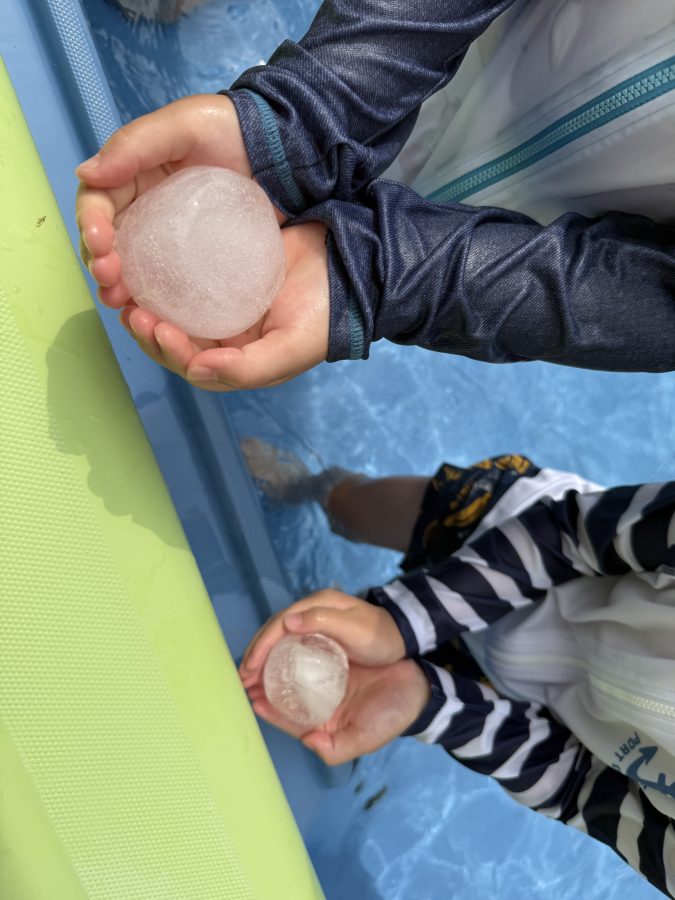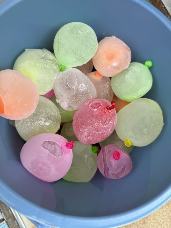 以前遊んだ時に割れなかった水風船たちを凍らせ